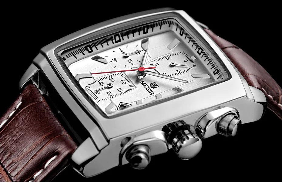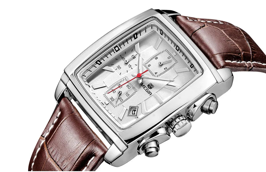 Elegante e sofisticado, este relógio masculino possui mostrador retangular azul e pulseira de couro, ideal para o uso diário. Equipado com cronógrafo funcional e movimento quartz preciso, combina estilo casual com alta performance. Perfeito para homens que valorizam design moderno e conforto no pulso.